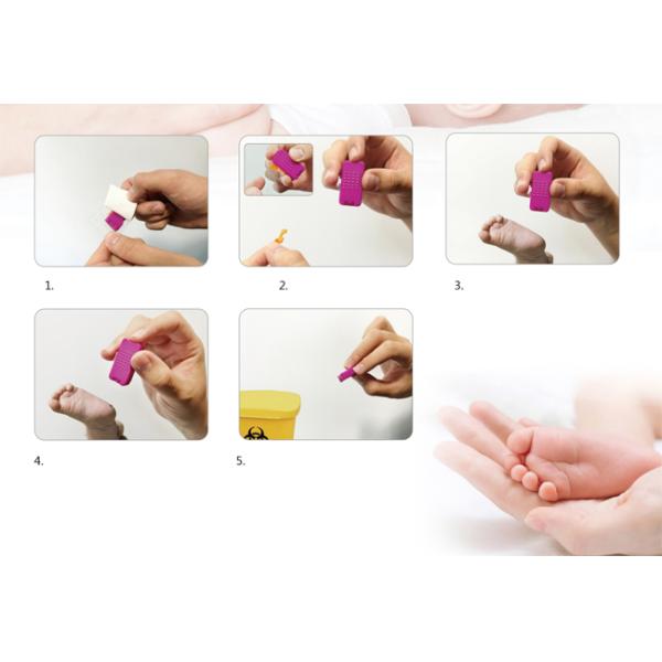 Step 4: Press the button of the infant lancet and make the penetration done.
