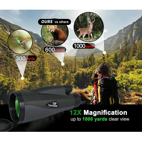 【12x60 Monocular Telescope】12x magnification provides a closer and stable imaging to catch close fast-moving objects; 60mm large objective lens collects more light for crisp clear bright vision.