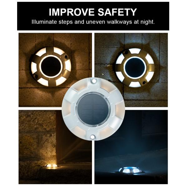 The solar deck lights is made of aluminum alloy, solar panels, led and storage battery. With its wireless design, no need for hand controlling, simple, safe.