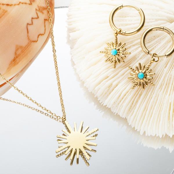 Buy Turquoise Stone 18k Gold Plated Jewelry Set Necklaces And Earrings For Women at wholesale prices
