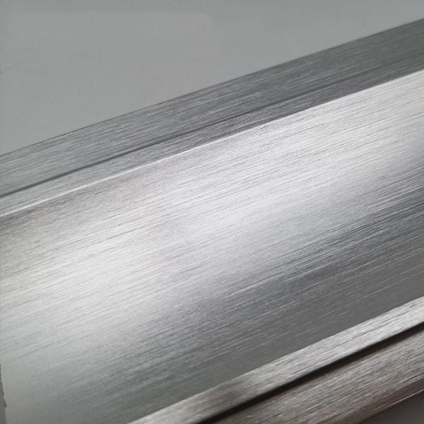 Brushed aluminium profile refers to the (physical treatment) mechanical friction or extrusion method on the aluminium profile surface to produce straight or irregular lines.