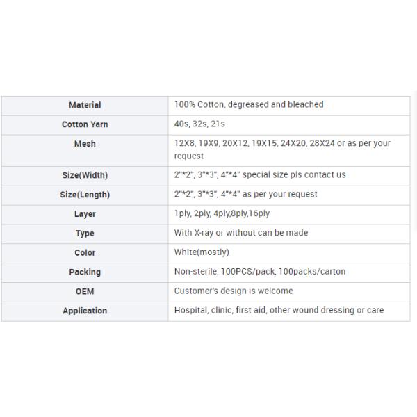 Buy 100% Cotton Surgical Medical Gauze Swabs 40s 32s 21s at wholesale prices