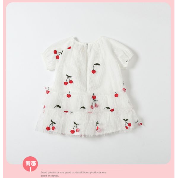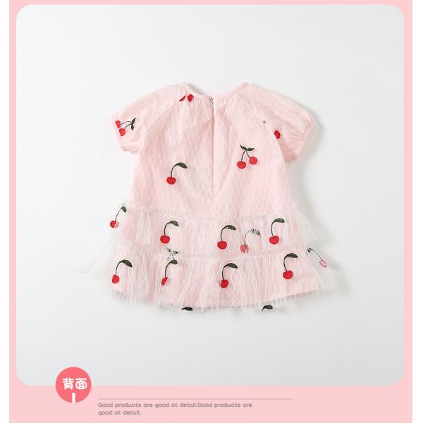 Summer Children's Clothing Baby Mesh Princess Dress Girls Cherry Dress