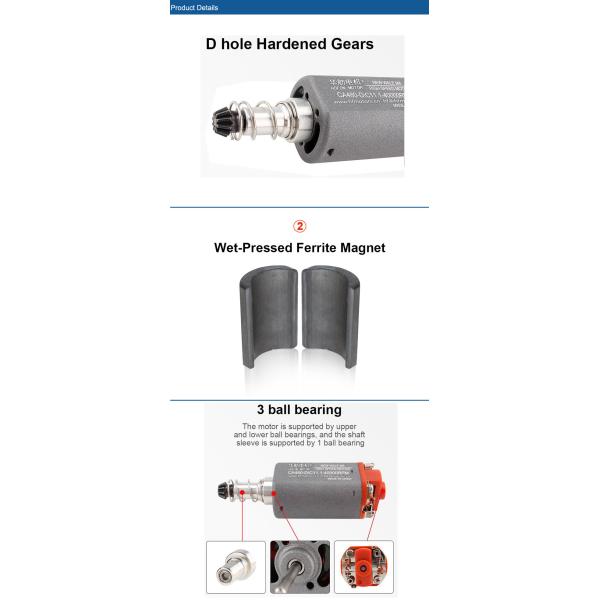 | 特点Typical characteristic | 1. Heat resistant, high performance magnets 2. Highly conductive motor brush 3. Reinforced Motor Axle |