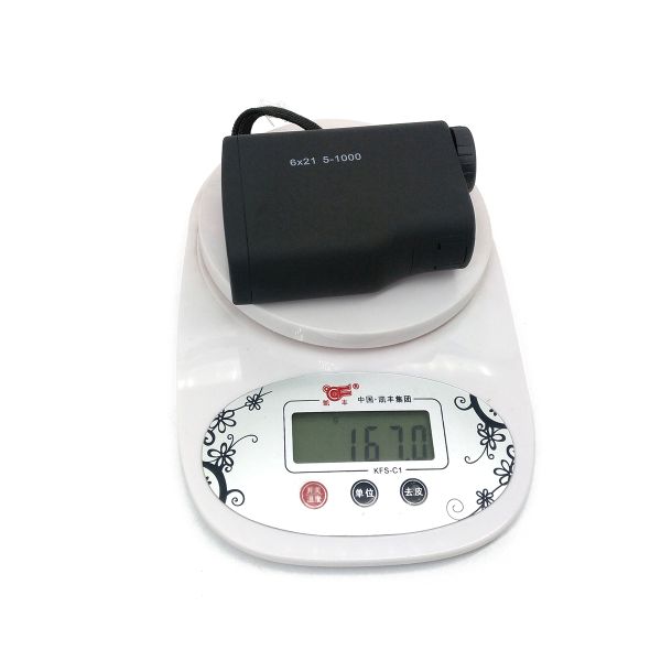 Rangefinder's weight is only 167g, which makes it compact and portable; Our rangfinder is perfect for hunting or archery at targets; Specs (Dimensions) are 105*82*43mm; Made from strong and durable materials to protect from drops while hunting and hiking! It's also weather resistant, so it's capable of enduring the harshest hunting conditions.