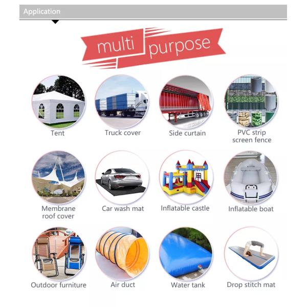 | Application | Truck Cover,Side Curtain,Awning, Medical Treatment, Water proof Construction, Tent, Architecture Membrane,Sport,Inflatable Fabric,Package,Bags,etc. |
