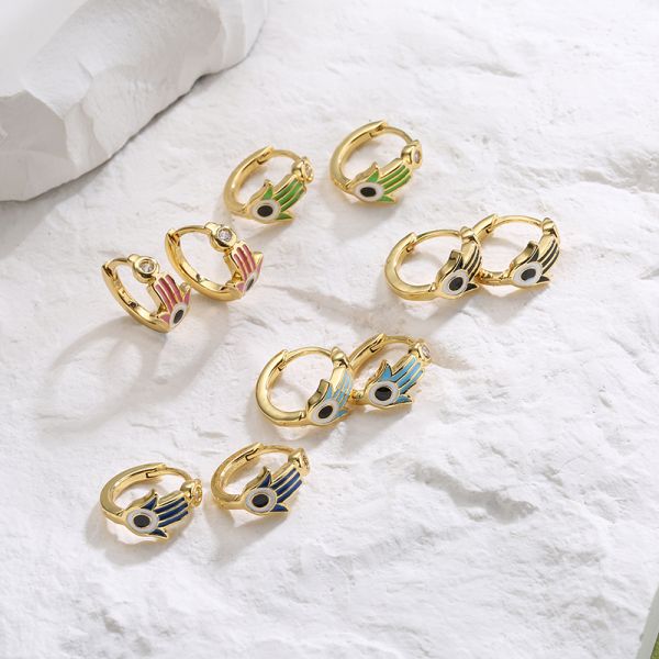 14k Gold Hoop Earrings Jewelry Zircon Colorful Enamel Palm Cuff Earrings For Women Girls