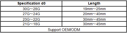Key Size: Needle tube length. Needle tip angle. Needle inner and outer diameter.