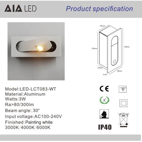 | Packing | Brown carton/White box or color box for Revolving led wall light |