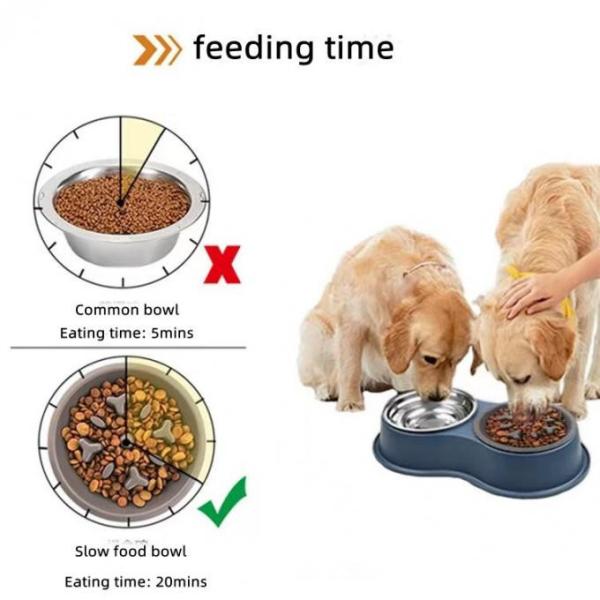 Pet Supplies Slow Food Dog Bowl Stainless Steel Pet Bowl Detachable Dog Cat Food Bowl Water Bowl Pet Slow Food Bowl