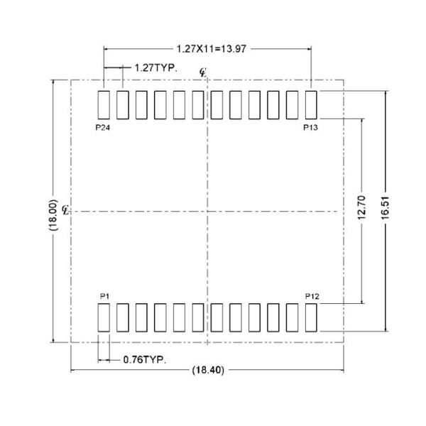 L22T001-B 1000 BASE –T Single Port Lan Transformer Modules PoE 60W Hi-pot 3KVAC Product Dimension: