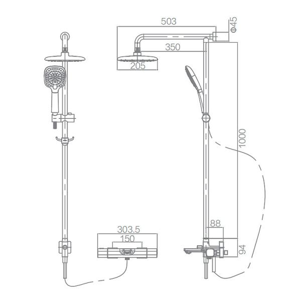 Head/Hand Shower: 205×205mm / 110×263mm( ABS)