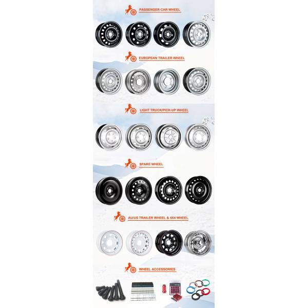 Size | 13 inch: 13x4.5 14 inch: 14x5.5/14x6.0 15 inch: 15x6.0/15x7.0 | PCD | 4 hole: 4X100/4X101.6/4x114.3 5 hole: 5x108/5x114.3/5x120 5x120.65/5x127 5x139.7/5x160/5x165.1 6 hole: 6x114.3/6x139.7 8 hole: 8x165.1 10 hole: 10x108/10x114.3 | |||