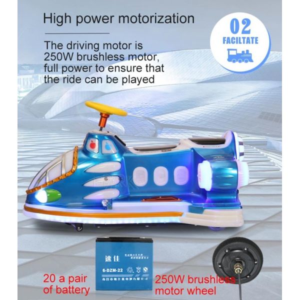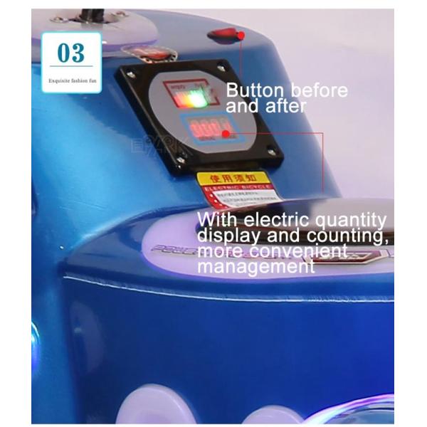 Ambient sound and dazzling LED marquee flashes are more attractive to children The operation is flexible, simple, convenient, free to control the direction, and the automatic braking response is timely when the accelerator is released.Stable performance, balanced motion, no pulling and slow start, safe and reliable Double seat design, transparent glass fiber reinforced plastic body (new technology), chassis rotomolded crash ring designMachine walking can collide and spray bubbles, novel and exciting.