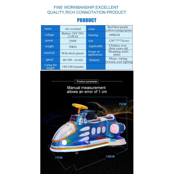 250W Air Overlord Kids Bumper Car Kids Riding Game Cion Operated Machine