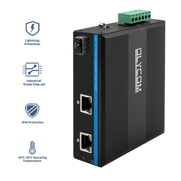 | Port | 1x100/1000M SFP Fiber SM: 1310nm/1550nm, 20Km; 1490nm/1550nm, 40~120Km MM: 1310nm, 2Km; 850nm, 500-meter 2x10/100/1000M UTP RJ45(Support MDI/MDIX auto-sensing) 1x6-PIN Power Terminal Block |