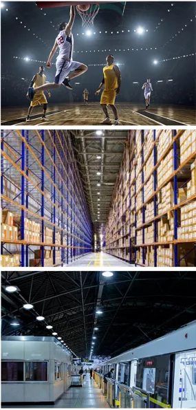 LED UFO Highbay widely used in Warehouses, libraries, workshops, shopping malls, supermarkets, shops, restaurants, sports centers, cinemas, hospitals, clothing stores, bars, and other indoor lighting places.