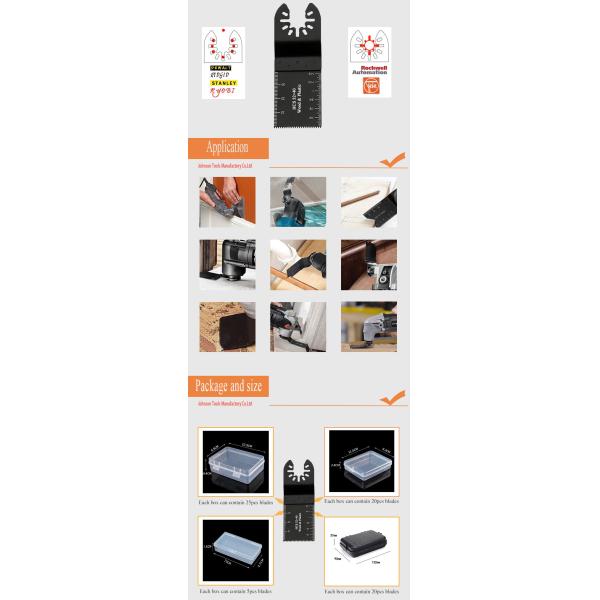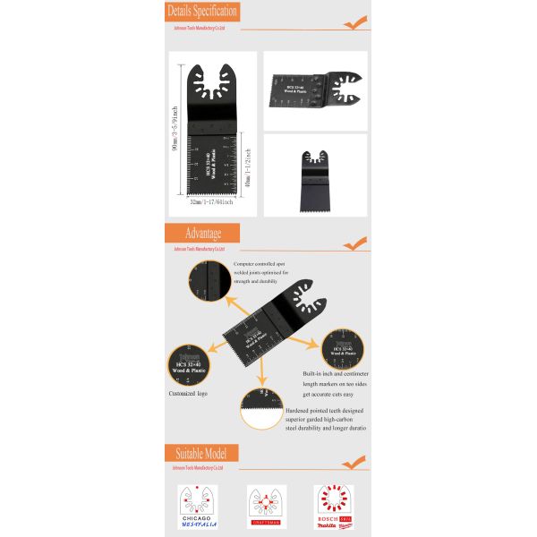 | Product name | Hot Sale 32x40mm HCS Quick Release Oscillating Multi Tool Oscillator Saw Blades Cutting Plastic |