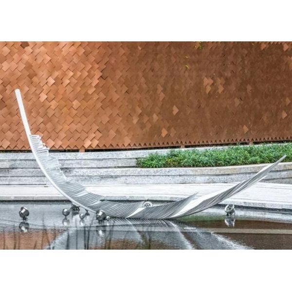 This large feathered metal stainless steel sculpture is installed in the middle of the pool. It looks like it has just fallen and floats gently in the water. We can recommend suitable sculptures we like according to customers' needs. We welcome customers to customize. We also have our own design team to work together to make beautiful sculptures with the most appropriate materials according to customers' needs. Welcome and look forward to our cooperation.