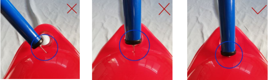Put the inflation needle onto the inflation equipment first, and then insert the needle into the buoy’s air valve to inflate it, please notice the needle must insert into the air valve vertically and completely, tilting or incompletely inserting will damage the air valve.