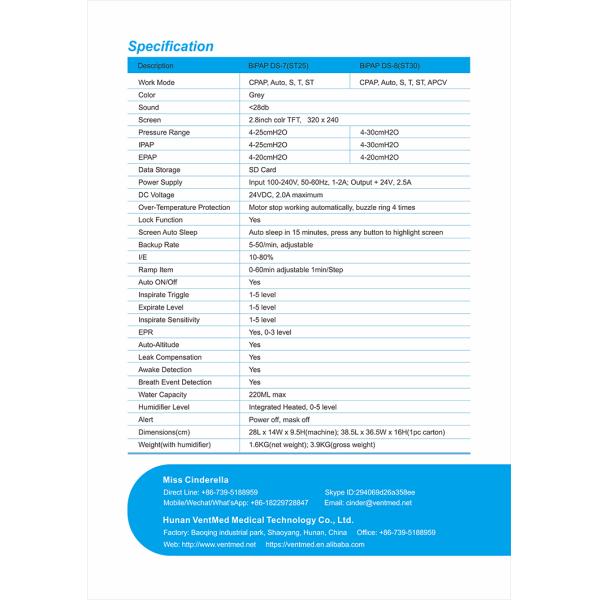 Ventmed Bi-level Positive Airway Pressure (BiPAP) with EPR