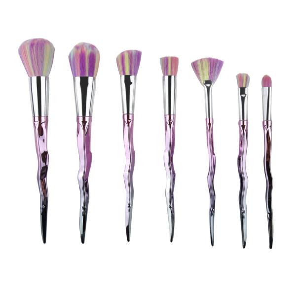 luxury 7 pieces cosmetic brush set , fantastic design with colorful bristles and special - shaped plastic handle , choosing this set to get more fun and decorate makeup with more beauty