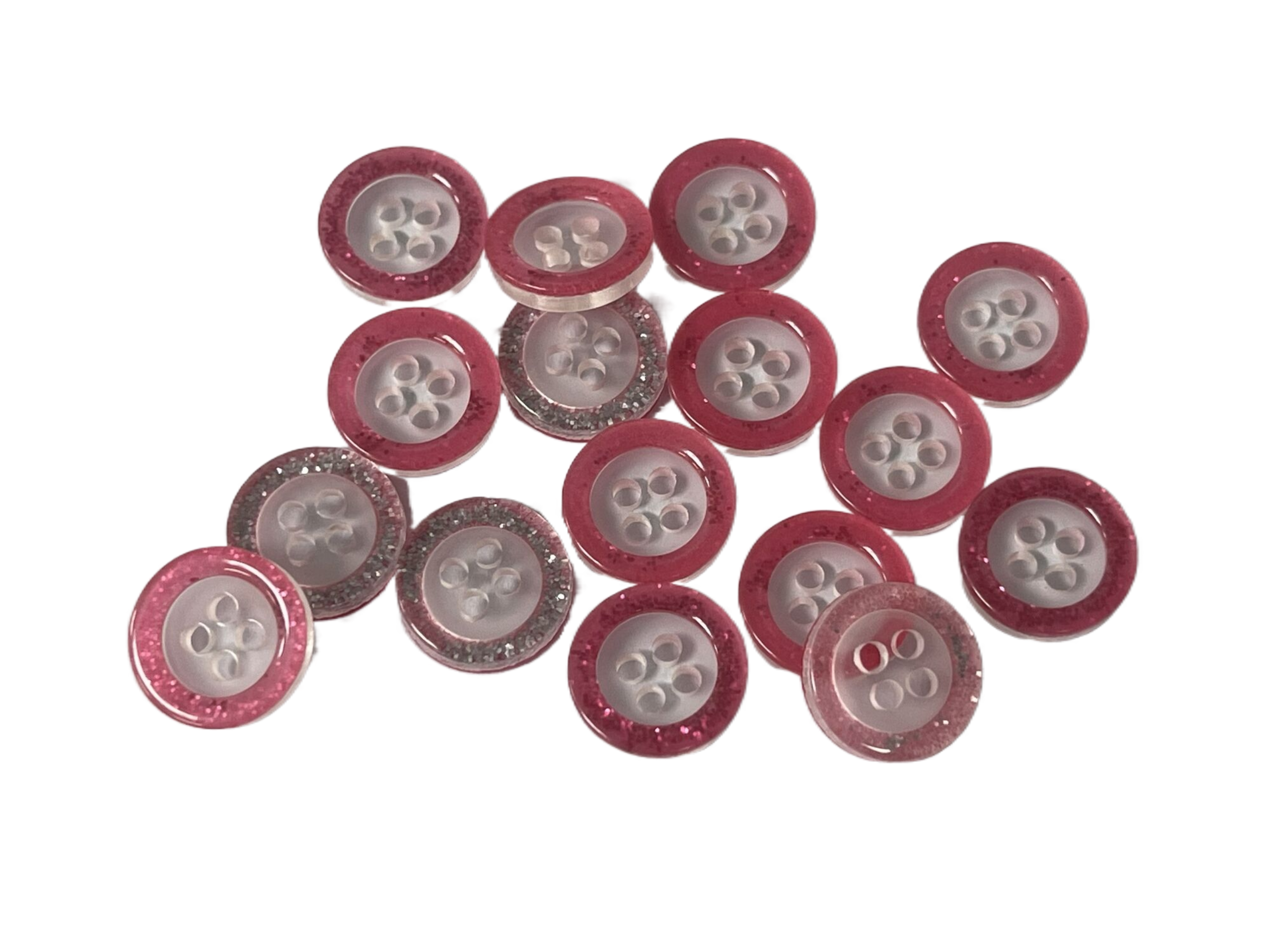 Transparent Shirt Buttons With Pink Glitter Rim Use On Shirt Blouses