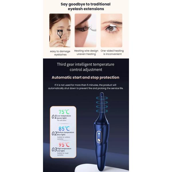 The heated eyelash clip has 3 adjustable temperatures : 75 ° C/85 ° C/95 ° C. You can choose the appropriate temperature according to the different eyelashes to meet the needs of different people.