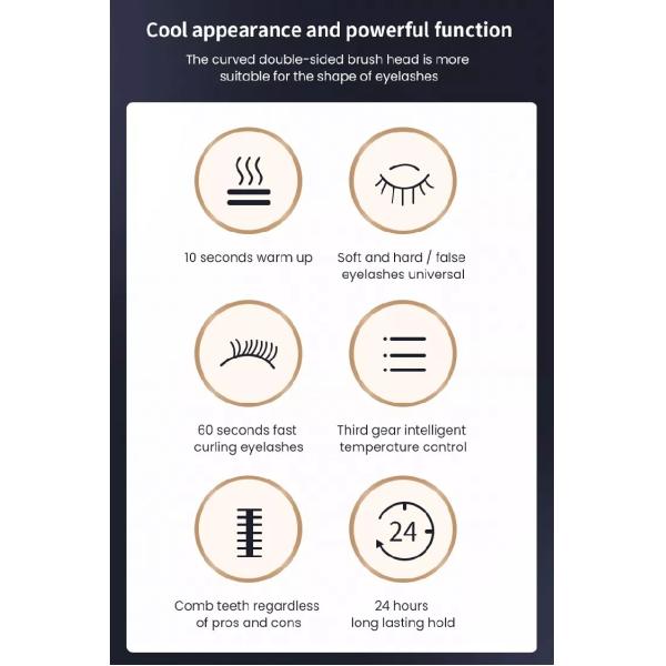 Powerful function, intelligent constant temperature : 10s fast preheating, fast heating of the heated eyelash clip in 10s, fast curling in 60s, 360 degree curling, lasting for 24 hours. Perfect fit for natural curl. When used with mascara, the curling effect will last all day, making your eyes charming all day long