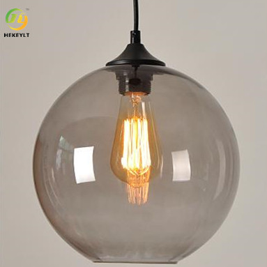 Nordic retro restaurant chandelier bar single head bedside small chandelier creative cafe smoke gray glass ball lamps