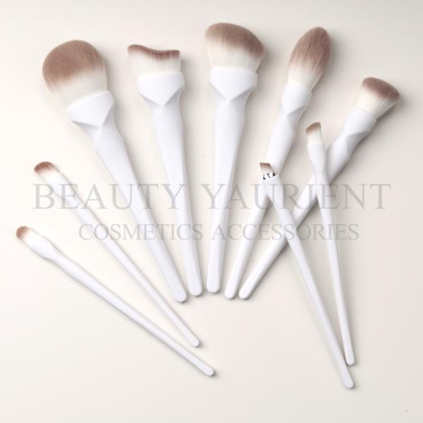 2022 New Arrival Privated Design 9pcs Soft Touch White Face Makeup Brush Set With Patent X Shaped Plastic Handle, Makeup brush X shape handle
