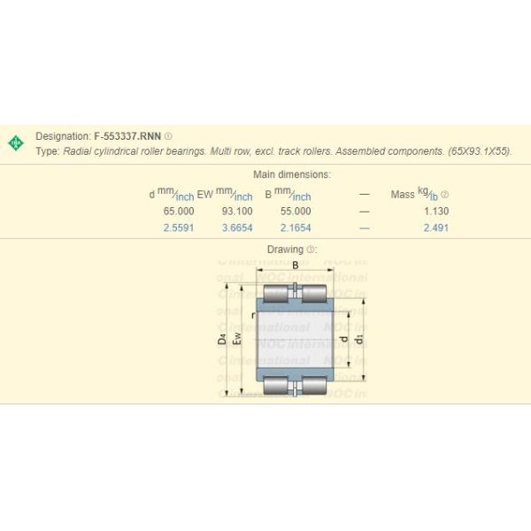 | F-553337 Bearing Size: | 65mm X 93.1mm X 55mm |