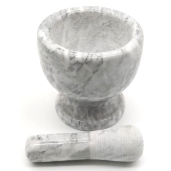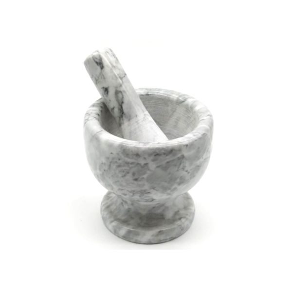 This mortar and pestle set is made with high quality marble that comes in a beautiful natural marble color. The grinding mortar bowl has an unique polished exterior and unpolished interior that will make your kitchen more elegant.