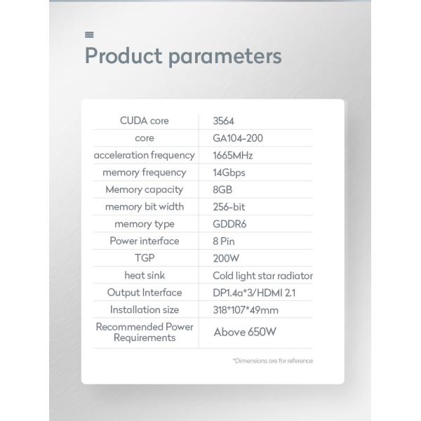 | I/O interface | 1×HDMI 2.1 interface, 3×DisplayPort 1.4 interface |