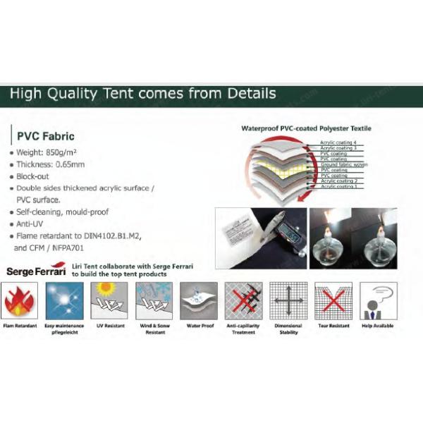 -The frame of the tent is white paint hot-dip galvanized steel pipes, PVC cover is fire retardant.