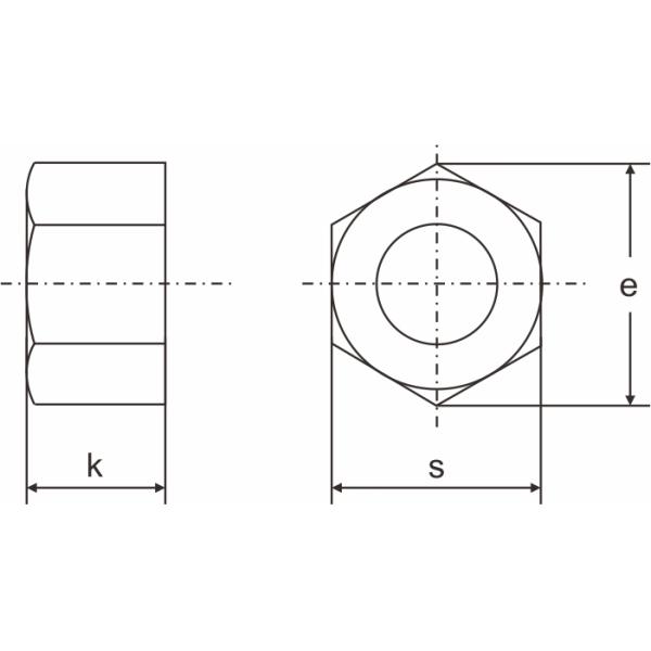 • Hex nuts feature internal threading and are commonly used with machine thread bolts and screws, in applications where no “locking” mechanism is required.