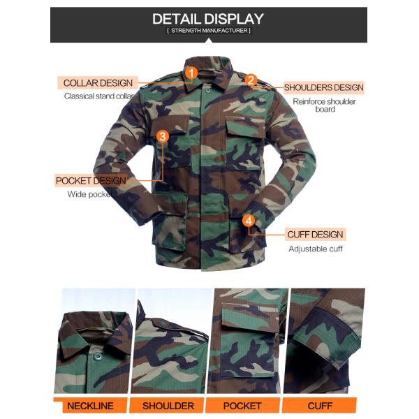 Tactical wear BDU woodland camo uniform T65/C35 rip-stop waterproof function