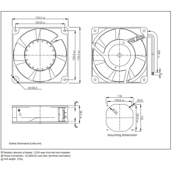 | FJ12032AS | M2E6301-SB | 230 | 50 | 0.12 | 19 | 2500 | 85 | 145 | 51 | 34 | ① | ----- |