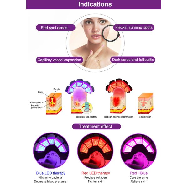 Photodynamic therapy, also known as light irradiation therapy or photochemotherapy, is a new technology that uses photodynamic reactions for disease diagnosis and treatment based on the interaction of light, photosensitizers, and oxygen, and is applied to the treatment of moderate to severe acne, with the advantages of fast onset, good efficacy, and no obvious side effects, so more and more patients choose PDT treatment. HM-320 LED Photodynamic Therapy Machine It adopts LED bulbs imported from the USA with a purity of over 99% and a narrow spectrum of blue and red light source. It can effectively achieve treatment effects such as skin whitening, skin freshening, wrinkle removal, and anti-aging. When treating black sores with this light source, it is absorbed in large quantities by the acne bacteria that reproduce photosensitive substances; by killing Propionibacterium acnes, skin acne is subsequently eliminated.