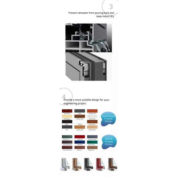 | Hardware | 1. German brand: HOPPE, Roto, Siegenia, etc. 2. Chinese brand: Kinlong, HOPO, etc. |