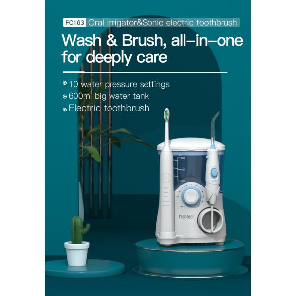 Water Flosser with Sonic Electric Toothbrush 600ml water tank 10 Rating Adjustable Pressure Functional Nozzles