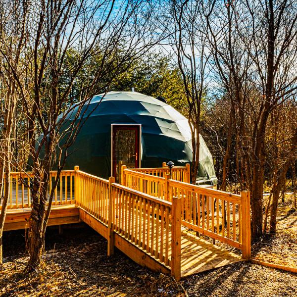 Our eco-friendly dome tents can be setup in any location with minimal impact on the surrounding environment. The are designed to run completely off grid with a solar powered ceiling fan and wood stove, but can also be wired with electricity if you prefer. All of the Backcountry Recreation Geodesic Domes are built with high quality materials and components and should last over 15 years if it is looked after well. We also carry spare PVC Covers in stock in case of emergencies.
