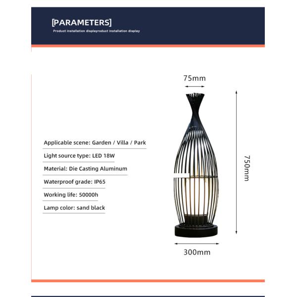 | Product name | High end light luxury bird cage shape low-power outdoor lawn lamp | |