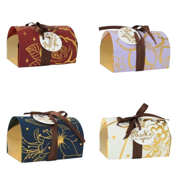 | Product Name | Ribbon Bronzing Pattern Cardboard Food Packaging Wedding Candy Boxes |