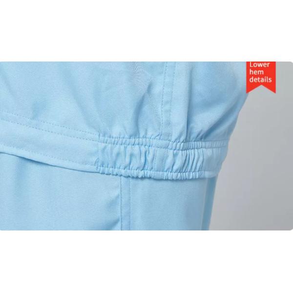 fine-line twill, this shirt and pants is lightweight, comfortable, looks professional and is durable enough to stand up to any food service environment. Each uniform is zipper open and has velcro fasten in the neck, no pockets design to protect the environment from lints in it.