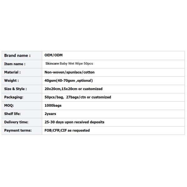 | MOQ: | OEM brand 25,000 packs ; there is no MOQ requirement of our own brand wipes. |