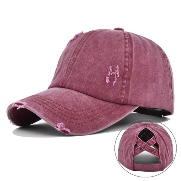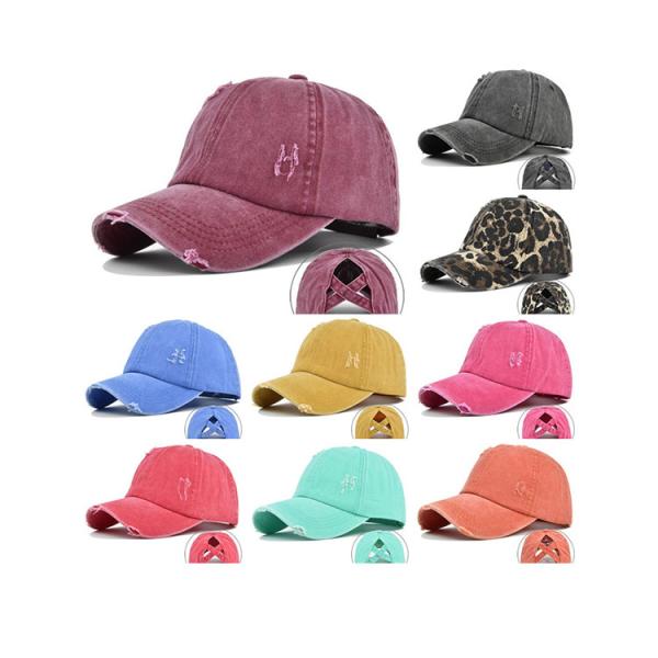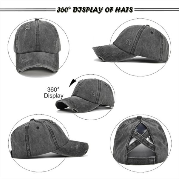 Women's Washed Distressed Cotton Denim High Ponytail Hat Adjustable Baseball Cap