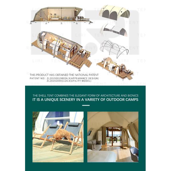 Shell shape glamping tent is a new pursuit of life for users. The sleek debut, blending the bionic and architectural elegance, is the perfect choice for a variety of scenes.