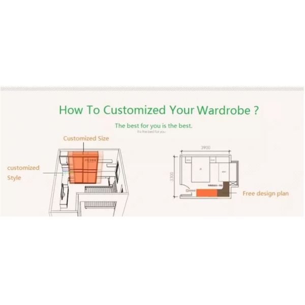 | Door | Structures: 1.Sliding door(18mmMDF, more than 200 patterns) 2.Opening door 3.Frosted glass 4.No door,the wardrobe are walk-in, a coatroom Surface Finishes: 1.UV(plain color,wood grain,or colorful painting more than 300 patterns) 2.Acrylic(plain color,wood grain,or colorful painting more than 300 patterns) 3.PVC 4.Lacquer 5.Melamine |