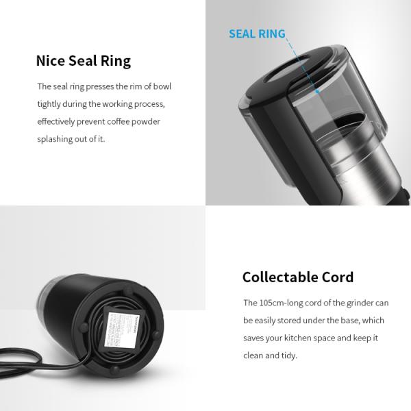 2) Fast and Convenient Grinding: With the powerful 150w motor and 304 stainless steel blades,